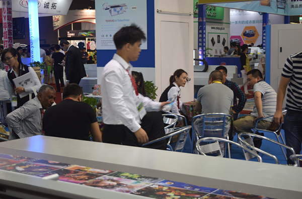 ? 展會期間,來自各地參觀考察的朋友絡(luò)繹不絕的來到越達展館參觀,展位旁圍滿了參觀咨詢?nèi)藛T,現(xiàn)場觀看打樣,洽談業(yè)務(wù),成為展會的一大亮點。大家一致對越達彩印UV平板打印機、紡織印花機、卷平一體機的強大功能,清晰逼真的打印效果贊不絕口!一直到撤展前,仍有許多朋友前來參觀咨詢。