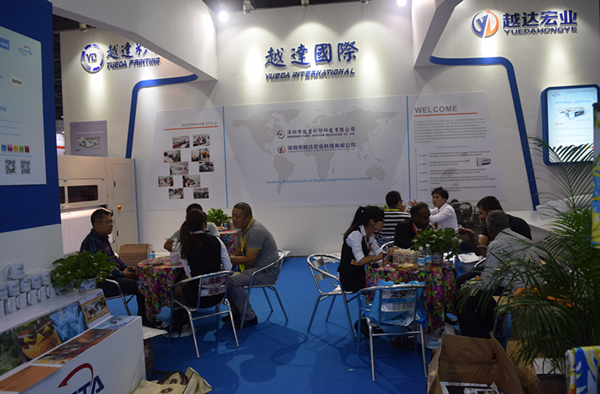 ? 此次展會是由廣州粵展展覽有限公司在廣州琶洲保利世貿(mào)博覽1號館主辦,為期3天,于昨日下午4:00(11月19日)圓滿結(jié)束。越達彩印科技在此次展會中展出了適用于裝飾裝修、廣告、包裝、紡織印花、皮革、個性創(chuàng)意禮品等等多個行業(yè)的多款印花噴繪設(shè)備,接待了來自全球各地的朋友,從布展到撤展歷時4天,經(jīng)過大家不懈的努力,取得累累碩果!