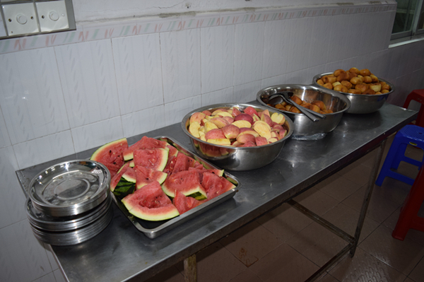 看一下都有什么好吃的?水果飲料、豐富的菜肴。