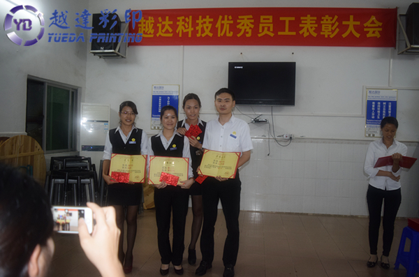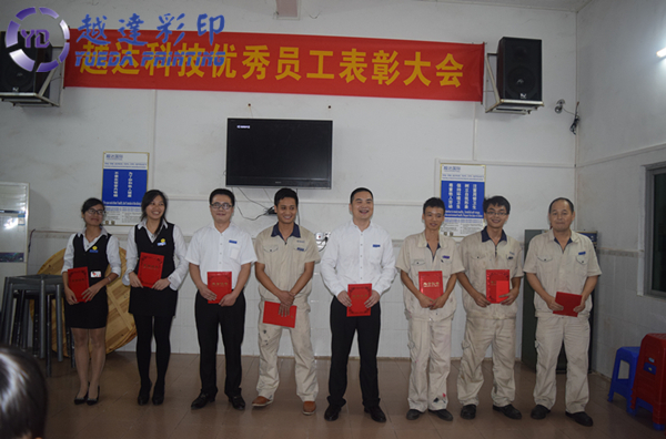 ? 11月初,越達(dá)彩印科技進(jìn)行了10月份優(yōu)秀經(jīng)理與員工選拔,經(jīng)過(guò)公平公正的投票選舉,共選出優(yōu)秀8人,其中優(yōu)秀經(jīng)理1人,優(yōu)秀員工7人。在昨晚表彰大會(huì)上對(duì)他們予以表彰和獎(jiǎng)勵(lì),頒發(fā)榮譽(yù)證書(shū)和獎(jiǎng)金,以表彰他們?cè)谄綍r(shí)工作中認(rèn)真負(fù)責(zé)、積極主動(dòng),對(duì)本職工作兢兢業(yè)業(yè)、銳意進(jìn)取,起到優(yōu)秀的帶頭作用。