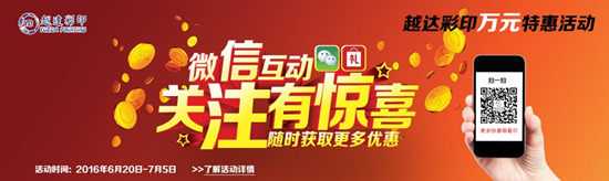 ?1、凡6月20日至7月5日訂購(gòu)機(jī)器的客戶,關(guān)注“越達(dá)科技”微信公眾號(hào)(微信號(hào):yuedaprinter)并在微信朋友圈轉(zhuǎn)發(fā)此信息,然后截圖給越達(dá)科技客服部,即可獲贈(zèng)價(jià)值6800元的耗材和8800元墨水代金券;